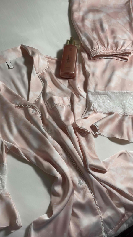 بيجامة نص كم مع دانتيل 🩷