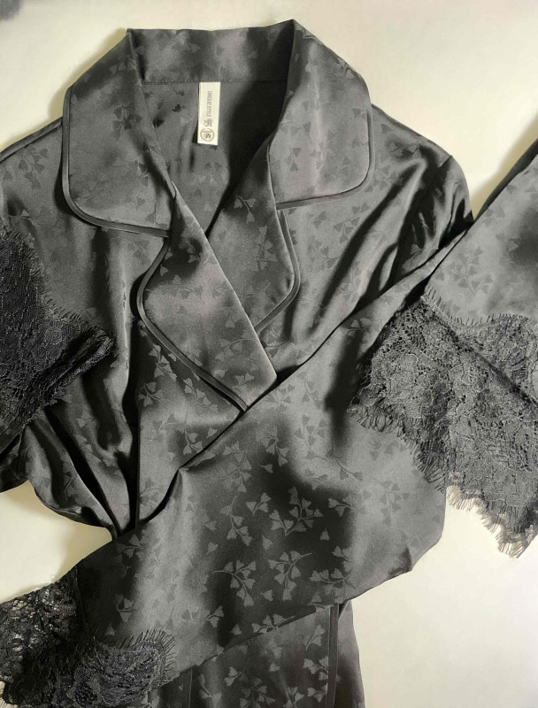 بيجامة سوداء أكمام طويلة مع دانتيل بالأطراف🖤